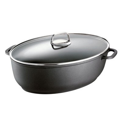 201062-38 Features: -Fully flat base, suitable for induction. -Best heat conductivity due to cast aluminium. -Ideal for low-fat browning on the cooker and cooking in the oven. -Heat-proof outer coating; robust, ecofriendly ceramic coating - no PTFE and PFOA. -Ovenproof up to 180° C. -Suitable for all cooker types, including induction and ceramic glass hobs. Diameter: -33 - 40 cm. Material: -Aluminium. Cooking Surface: -Non-Stick/Polytetrafluoroethylene. Capacity: -5 Litre Or More. Hob Suitable: -Yes. Lid Included: -Yes. Handles: -Aluminium. Shape: -Oval. Colour: -Black. Non-Stick: -Yes, Yes. Hardware Material: -Aluminum/Glass. Number of Items Included: -2. Dimensions: Overall Height - Top to Bottom: -12 Centimetres. Overall Width - Side to Side: -38 Centimetres. Overall Depth - Front to Back: -30 Centimetres. Overall Product Weight: -3.4 Kilogram. Read more details..
