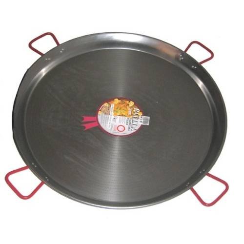 PAELLA Pan Ø 100 CM Polished Steel/85 parts Oven-Proof Dish Round Specifically designed for the cooking paella. the IDEAL 100 cm paella Pan Polished Steel 85 parts your invoice You can also be used for 1 year guarantee / / Features: paella Pan has been designed for use with gas or a direct flame polished steel; / / for 85 parts-Includes 4 side handles for good grip - NOT SUITABLE FOR DISHWASHERS / / 1 year guarantee suitable burners: 80 cm/90 cm / / Size and weight: External diameter: 100 cm Internal Diameter: / 92 cm, height: 8.5 cm / of the base-Thickness: 2.5 mm - Handle Length: 14 cm Width / of Handles: 17.5 cm Recommendations: After use, then soak your pan in warm soapy water for up to 1 hour and clean with a pad cleaning then dried and then immediately and apply a thin layer of oil, this pan is designed for use with gas or not a flame directe. place your ever paella Pan vacuum on a direct heat source warm your dish lentement. only use wooden utensils, since these pans (including handles) become very hot. Weight: / 23000 g Ref: / 17-5258 8412595100195-Bar Code Read more details..