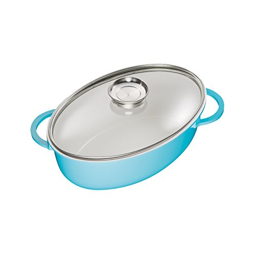 Versatile KING Oval Roasting Dish with Glass Lid and Aroma Knob for preparing tasty dishes-whether in the oven or on the cooker is superbly make your meals or even Ideal for low-fat, fat-free preparation of Speisen.alle properties at a glance:-External: Interior / aqua: marble beschichtet.Langlebige Whitford FUSION FUSION non-stick ceramic coating by Whitford.Frei from PFOA and PTFE.Deckel with Practical aroma knob for Flüssigkeitszufuhr.Maße: approx. 38 x 25 cm.Farbe: aqua.Material: Aluguss.Für geeignet.Lieferumfang all cookers: 1 x KING Oval Roasting Dish, aqua. Read more details..